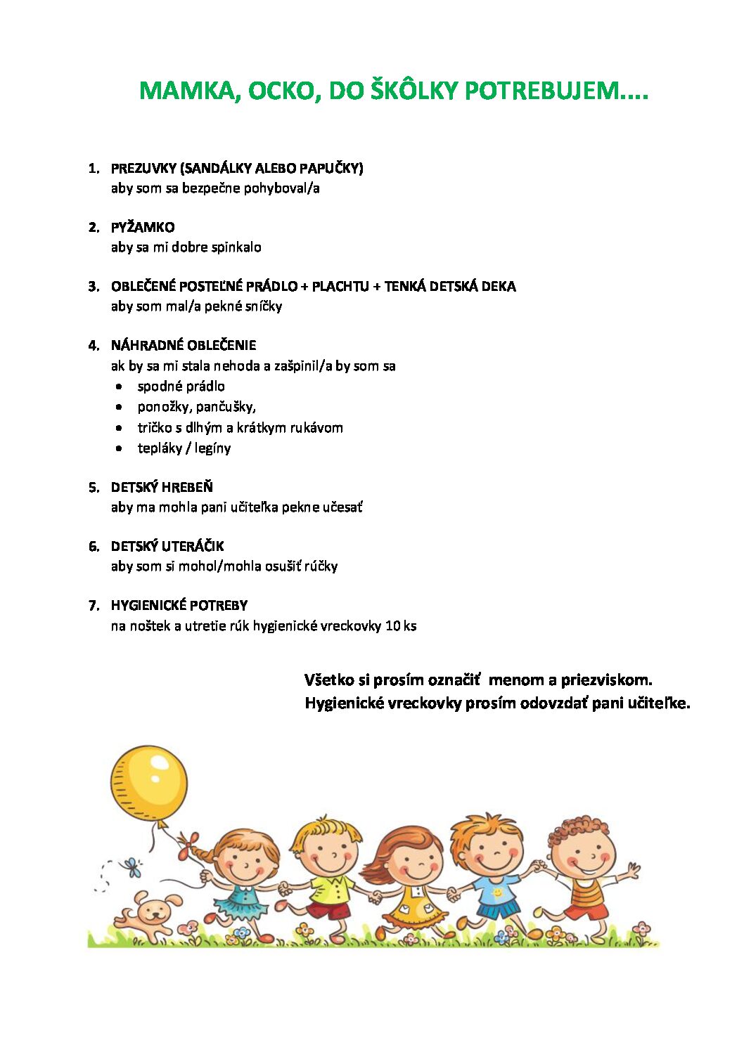 Zoznam vecí k začiatku školského roka 2025/2026