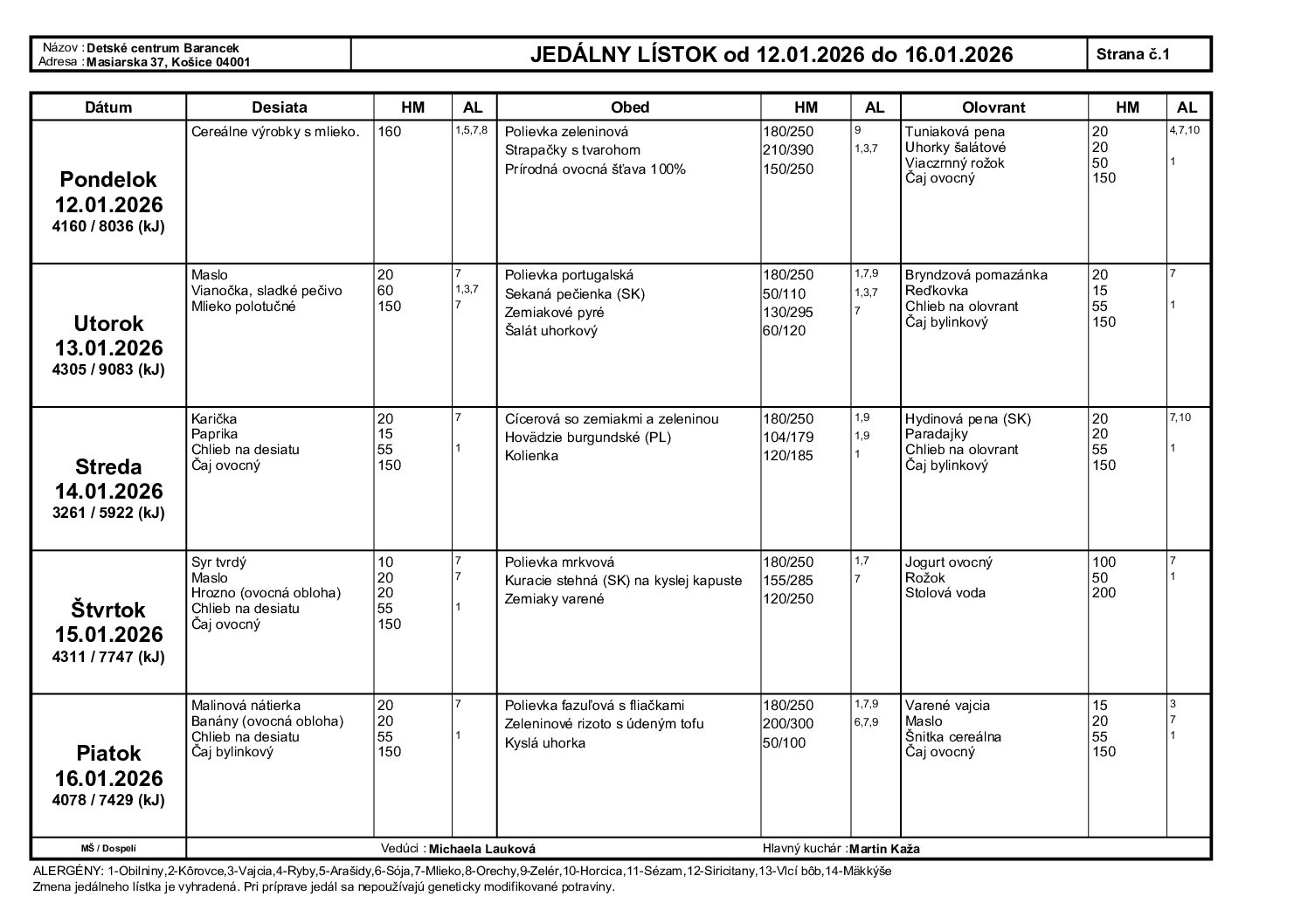 Jedálny lístok 12.1.-16.1.2026